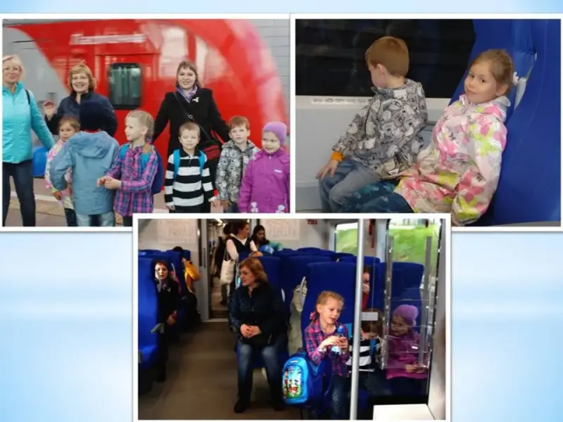 Слайд № 13 А так же дети узнали о новом виде общественного транспорта в Москве, о Московском центральном кольце. На МЦК курсирует электричка, которая называется «Ласточка», что она бесшумная и скоростная, а самое главное она соответствует всем современным экологическим стандартам и её можно отнести к экологически чистому виду транспорта.
