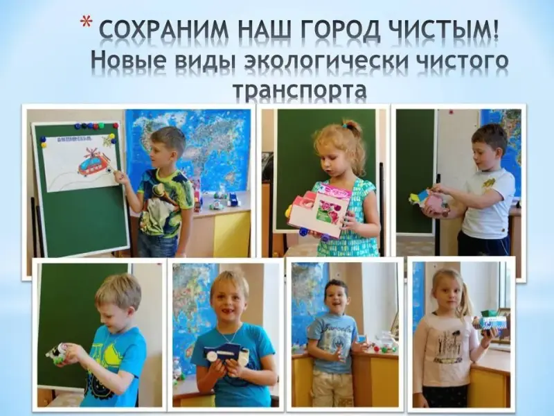 Слайд № 16 Мы с детьми так много узнали об экологически чистом транспорте, что решили вместе с родителями изобрести новые виды транспорта, которые сохранили бы наш город чистым.