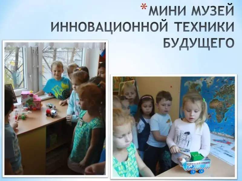 Слайд № 18 После презентации мы решили создать в группе мини музей инновационной техники будущего и приглашали ребят из других групп и знакомили их со своими изобретениями.
