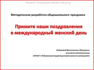 Методическая разработка общешкольного праздника "Примите наши поздравления в Международный женский день"