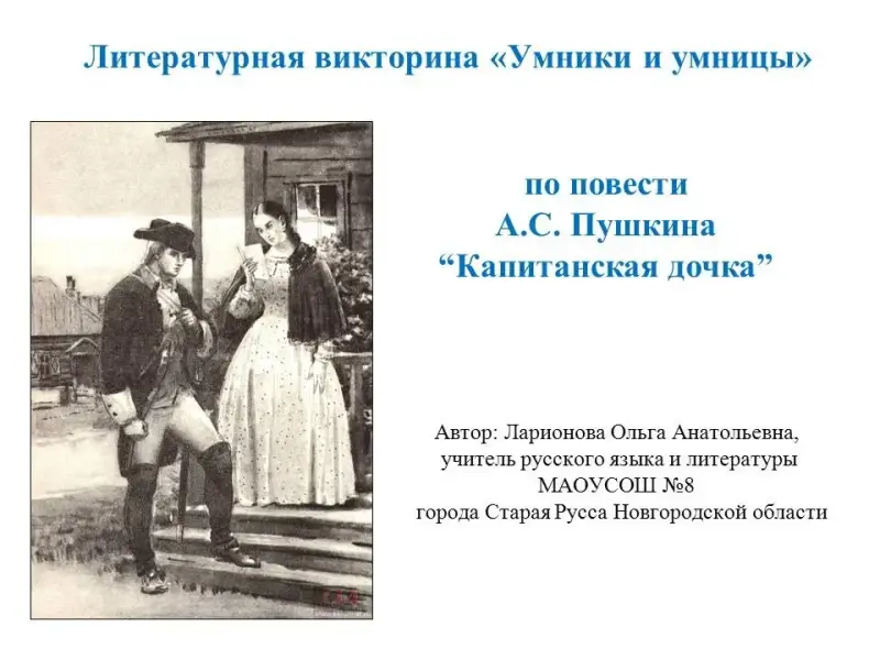 Литературная викторина "Умники и умницы" по повести А.С.Пушкина "Капитанская дочка"