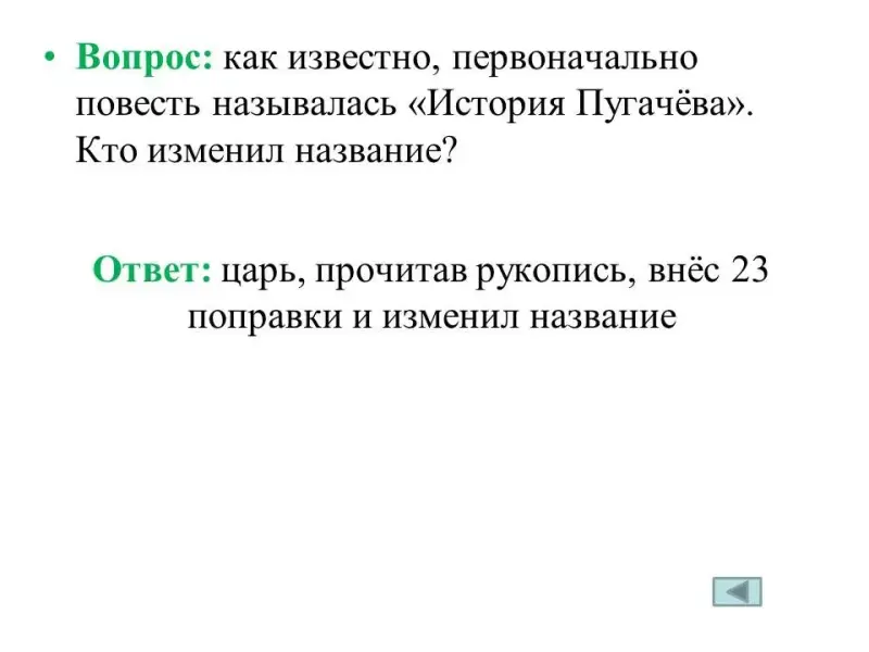 Вопрос: как известно, первоначально повесть называлась "История Пугачёва". Кто изменил название?