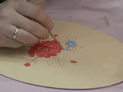 Прежде чем художник начнет расписывать металлическую заготовку подноса, ее грунтуют, шпаклюют, шлифуют и покрывают лаком. На этом этапе выбирают цвет для фона. Чаще всего он бывает черным, но может быть и белым, красным, синим, бирюзовым и г.д.