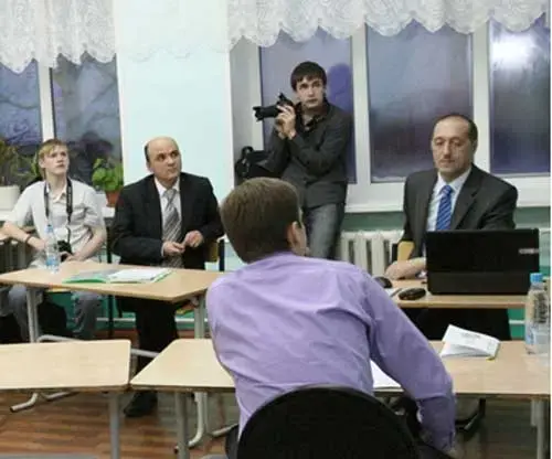 Когда наш гость появился в школе, и я пожал ему руку, то заметил, что он пожал мне руку - не слишком сильно, ровно так, как нужно, не задержал рукопожатие, не отдёргивал свою ладонь раньше времени, и ладонь его была сухой и тёплой. Всё было идеально до жути. А ещё я отметил безупречный этикет. Он такой, по-видимому, эстет по жизни! В его тоне не было никакой деланности или формальной вежливости. Только искренний интерес и участие. После этого я задал гостю несколько вопросов, и на все из них наш «ас» давал уверенные ответы. Наша непринуждённая беседа началась. Время пошло́. Теперь и ты, мой дорогой читатель, можешь посмотреть, что у нас получилось.