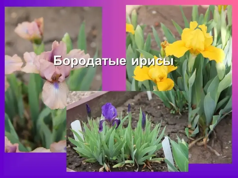 <Слайд6> Самые популярные среди ирисов - бородатые, за красоту и изящество их называют "северной орхидеей". Своим названием они обязаны волоскам, расположенным на наружных долях околоцветника. Самыми неприхотливыми в условиях юга Амурской области являются карликовые бородатые ирисы, отличающиеся цветением в мае.