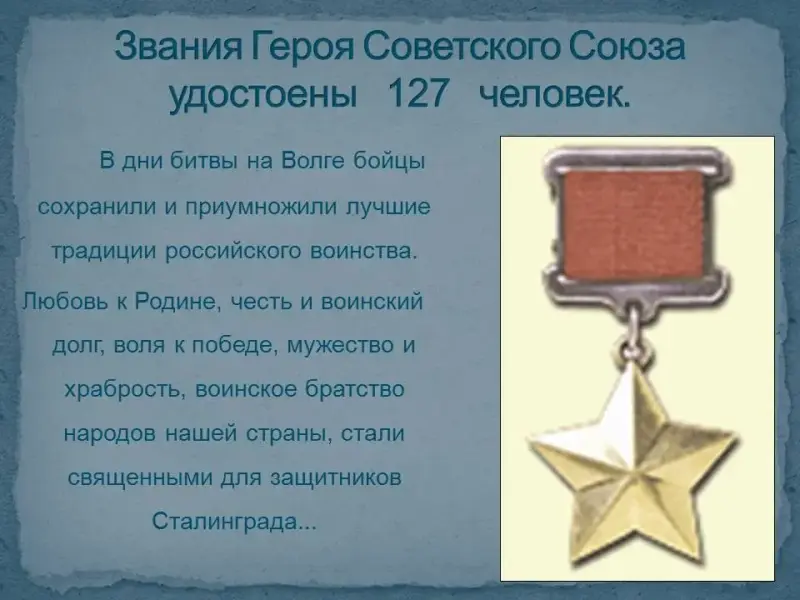 Сталинград долгое время был центром ожесточенных и кровопролитных боев. Здесь, не умолкая дни и ночи, гремели взрывы бомб и снарядов, дымились развалины зданий, плавился асфальт улиц и площадей, бушевал огонь на речной глади, покрытой нефтью, хлынувшей из разрушенных хранилищ. "Выстоять и победить" - фраза вошла в сознание защитников волжской твердыни, выражая непоколебимую решимость уничтожить врага. Здесь решалась судьба страны. И поэтому всех защитников Сталинграда можно смело назвать героями.