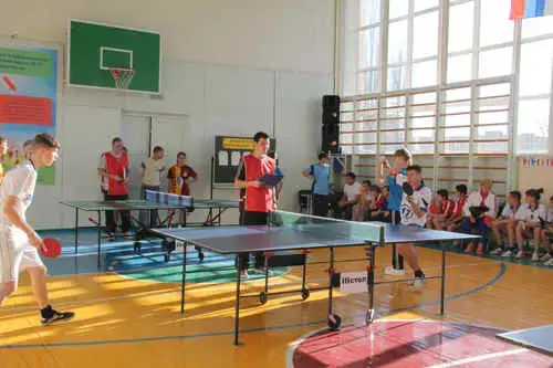Ведущий 1: Дорогие друзья! Уважаемые гости! Сегодня впервые в нашей школе проходит турнир по настольному теннису.