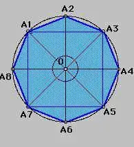 Построение правильного восьмиугольника. Для того, чтобы построить правильный восьмиугольник нужно сначала построить правильный четырехугольник, например, А1А3А5А7-квадрат, потом построить биссектрисы углов А1OА3, А3OА5, А5OА7, А7OА1, которые прересекут окружность в точках А2, А4, А6, А8 соответственно, затем последовательно соединить точки А1,А2,А3,А4,А5,А6,А7,А8. А1А2...А8-искомый восьмиугольник. <Рисунок 6.>
