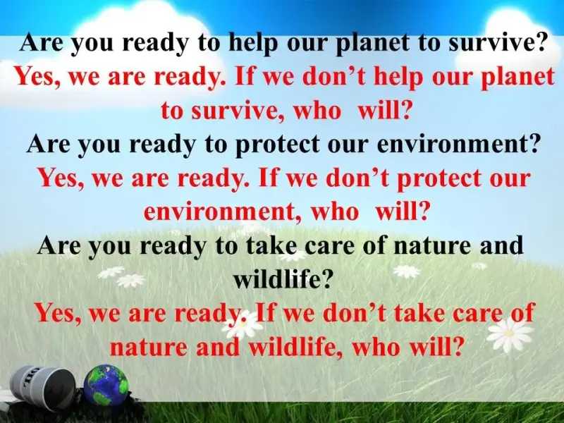 Students: Yes, we are ready. If we don't help our planet to survive, who will?