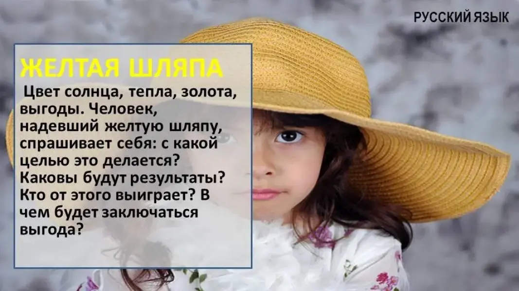 | 4. Метод "Думательных шляп" | - Чтобы справиться с первым заданием применим метод "Думательных шляп". |