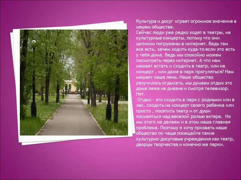 Современное общество в целях социально-экономического развития и духовного обновления всех сторон жизни, патриотического, экологического воспитания должно быть заинтересовано в эффективном использовании гражданами своего свободного времени.