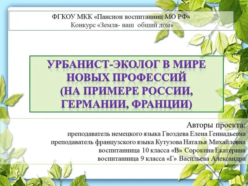Проект "Урбанист-эколог в мире новых профессий" (на примере России, Германии, Франции)