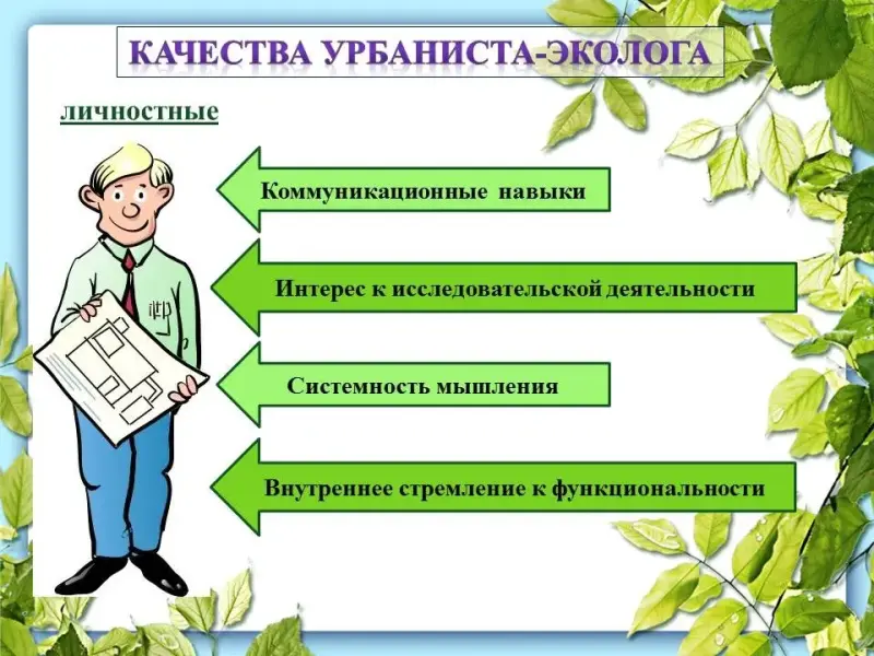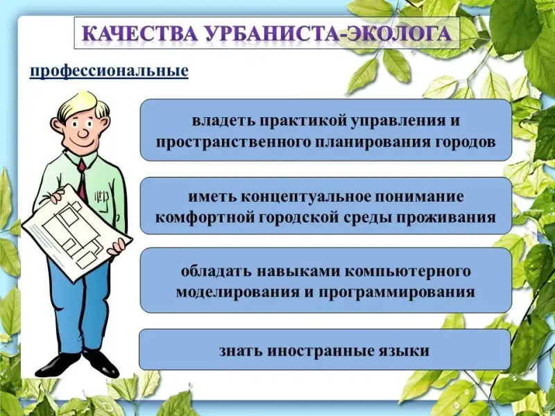 - Каковы профессионально важные качества и компетенции урбаниста-эколога
