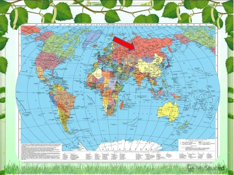 - А сейчас посмотрим, как выглядит Россия на карте мира. (СЛАЙД 5)