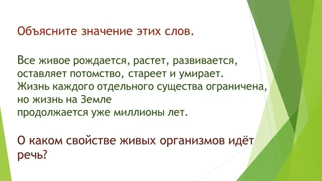 Все живое рождается, растет, развивается, оставляет потомство, стареет и умирает.