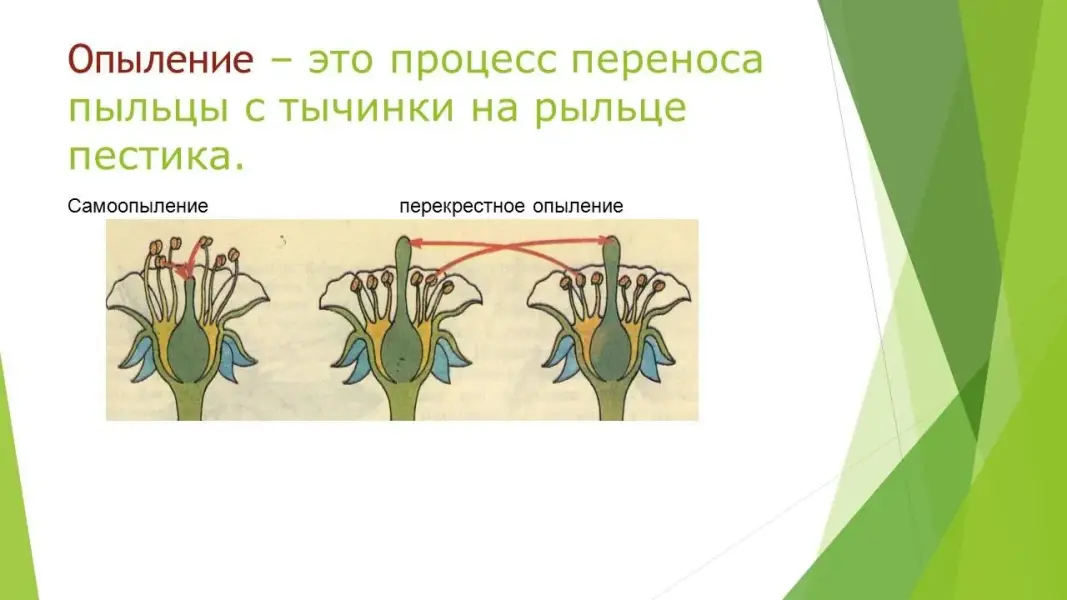 Слайд № 17 Самоопыление происходит при попадании пыльцы на пестик того же цветка, т.е. внутри одного цветка.