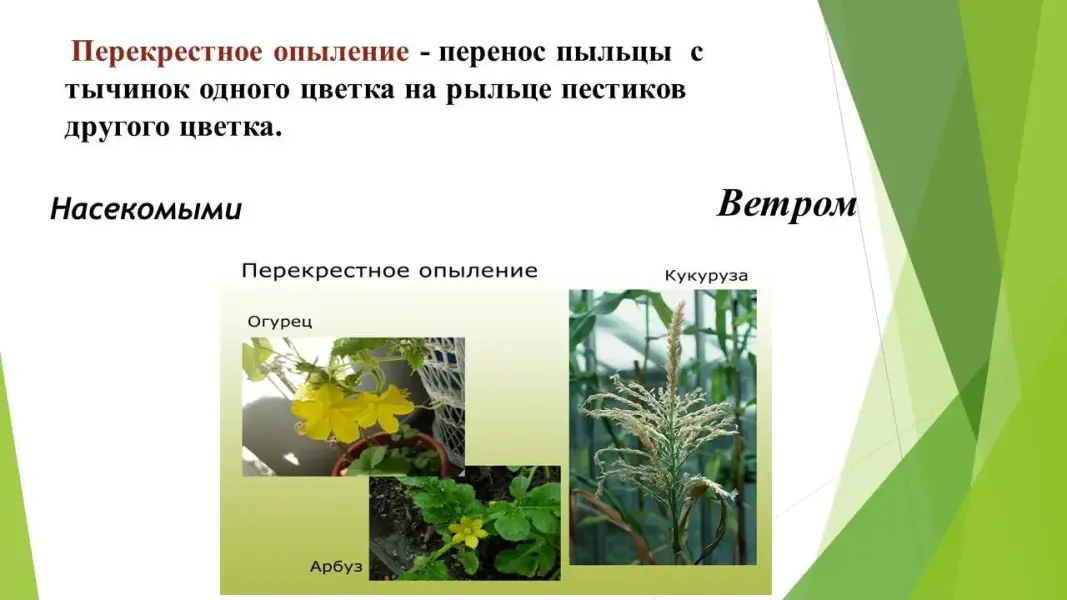Слайд № 18 Перекрестное опыление - перенос пыльцы с тычинок одного цветка на рыльце пестиков другого цветка.