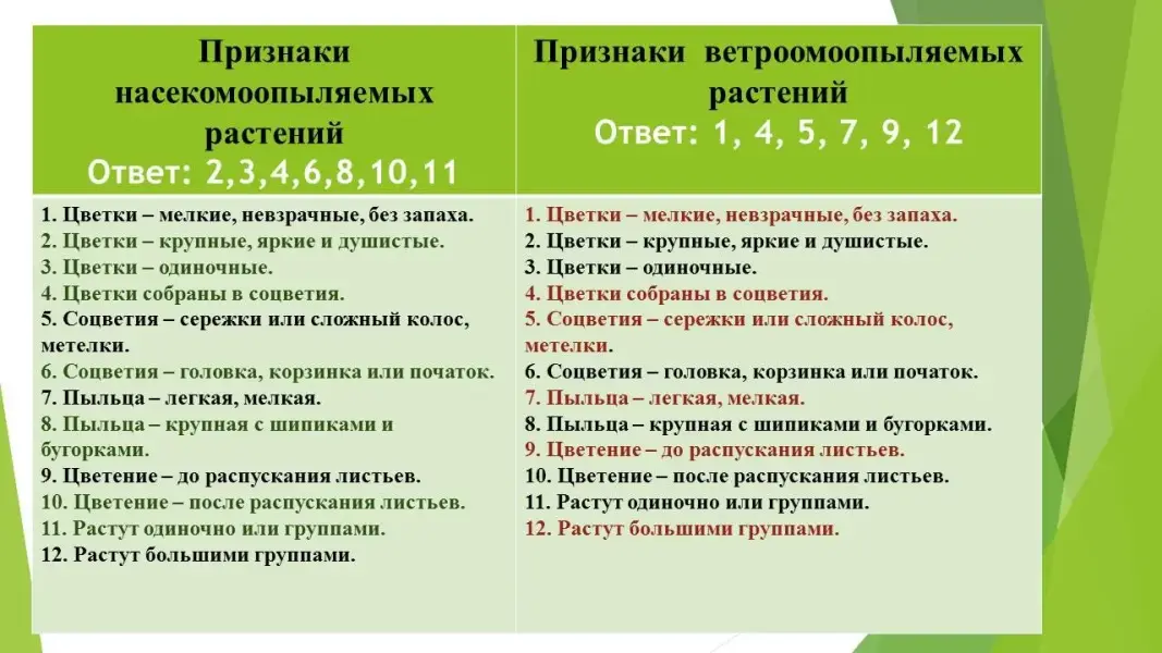 Слайд № 19 Какими признаками обладают насекомоопыляемые и ветроопыляемые растения?