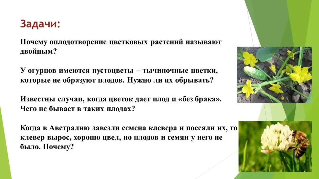 - Когда в Австралию завезли семена клевера и посеяли их, то клевер вырос, хорошо цвел, но плодов и семян у него не было. Почему?