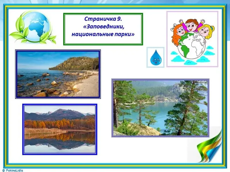 Учитель: Для охраны природы: воздуха, воды. Растений и животных, природных ландшафтов были созданы заповедники и национальные парки.