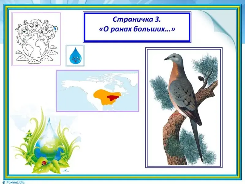 Птицы были распространены в Северной Америке до середины 19 века. Странствующие голуби - небольшие длиннохвостые птицы. Птицы перелетали огромными стаями с одного места на другое в поисках корма. Поэтому их назвали странствующими. Люди убивали птиц разными всевозможными способами. Они стреляли по движущейся стае и просто бросали палки. Уничтожение птиц могло продолжаться часами. Мясо убитых птиц засаливали в бочках, скармливали свиньям, использовали как удобрение. Странствующие голуби исчезли
