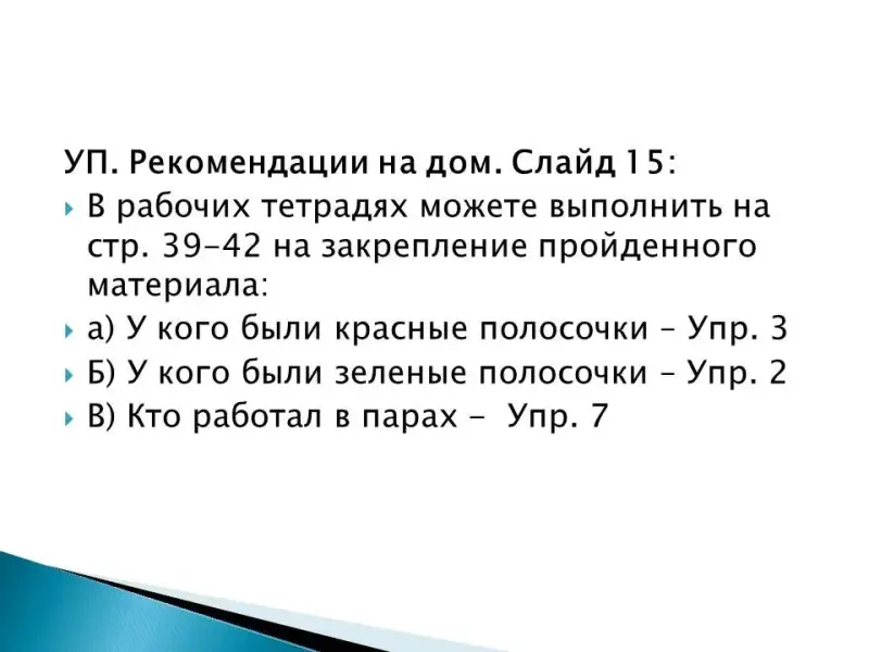 VП. Рекомендации на дом.