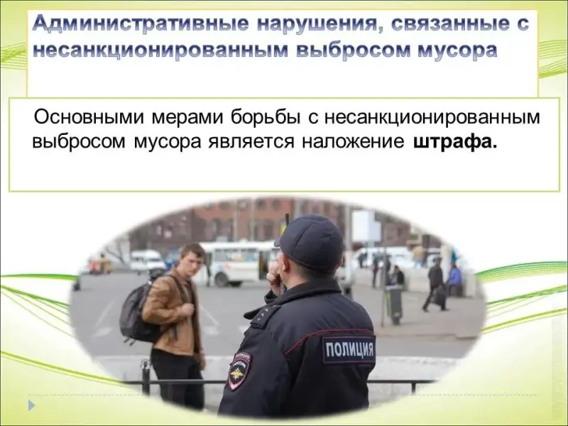 Основными мерами борьбы с несанкционированным выбросом мусора является наложение штрафа. Уполномоченные лица могу составлять протоколы и налагать штраф на нарушителя экологической безопасности окружающей среды.