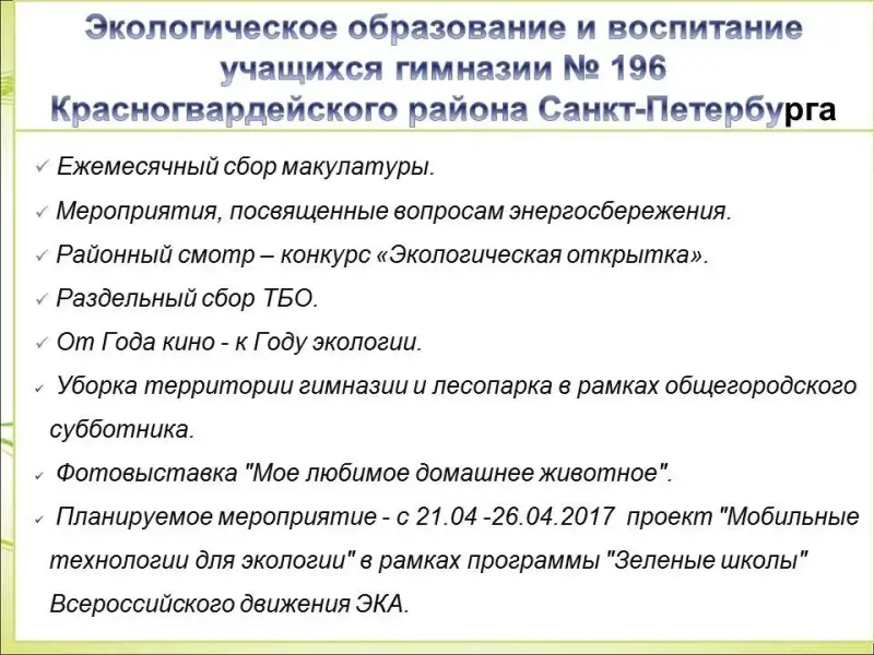 4.3. Экологическое образование и воспитание учащихся гимназии № 196 Красногвардейского района Санкт-Петербурга