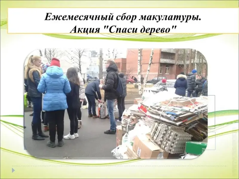 1. Ежемесячный сбор макулатуры. Акция "Спаси дерево" - сбор макулатуры.