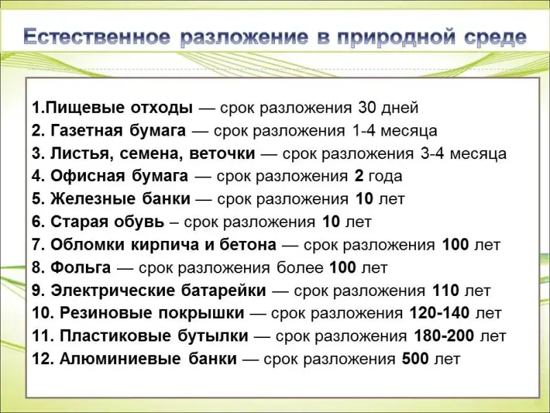 1. Пищевые отходы - срок разложения 30 дней