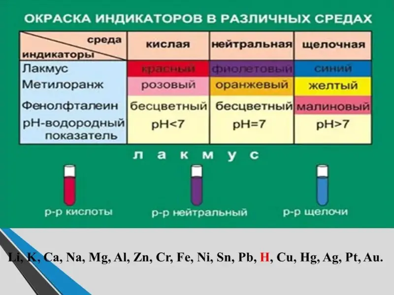 Учащиеся: Таблица изменение окраски индикаторов и электрохимический ряд активности металлов. Как вы думаете, что у кадров общее? Предлагаются разные варианты. В результаты формулируется тема занятия. (слайд 2)