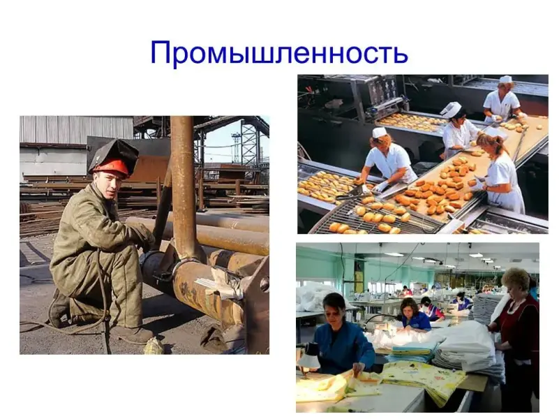 Промышленность (сталевар, ткачиха, кузнец, шахтер, слесарь, водитель, токарь)