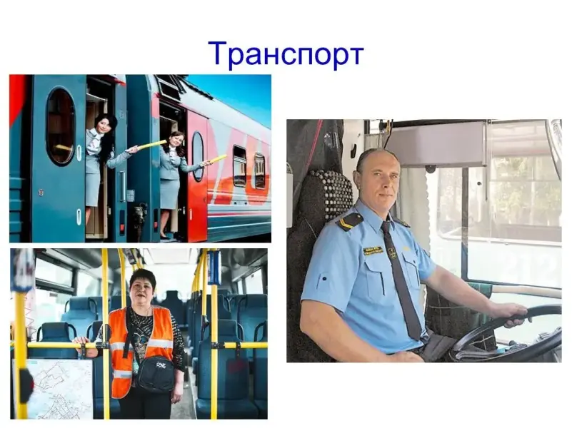 Транспорт (летчик, шофер, кассир, контролер, капитан, кондуктор, грузчик, матрос, проводник)