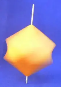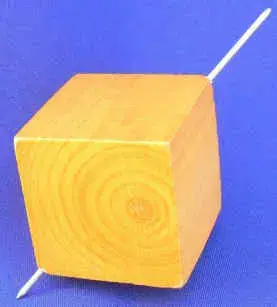 Правильный ответ можно отыскать экспериментально. Для этого из кубика сделаем игрушку, каждому знакомую с детства - юлу. В деревянном кубике просверлим отверстие вдоль диагонали куба и плотно вставим в него какую-либо спицу подходящего диаметра. На фото 1 получилась занятная игрушка, с большим математическим содержанием. Достаточно сказать, что изучением законов вращения волчка занималась Софья Ковалевская - первая женщина-математик России, и с этой работой она участвовала в конкурсе Парижской академии наук, став его победителем.