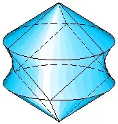Ясно, что форма фигуры вращения определяется ломаной ABCD (Рис. 2). Ребра AB и CD при вращении задают два равных конуса. Ребро BC и ось вращения скрещивающиеся, поэтому оно при вращении определяет
