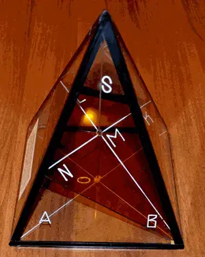 Как коллекционер, регулярно посещаю барахолку, где продают старые вещи. Однажды, встретив модель пирамиды с сечением, я не мог её не купить. Прежде чем принести в школу и показать её ученикам, решил облагородить её. Кардинальной разборки не стал делать, хотя неплохо было бы внутри "погонять" пыль, но ведь хочется сохранить оригинальность модели. Ограничился поверхностным уходом, выдраил стекла от разного вида налетов и заменил оклейку ребер. Вместо замызганных бумажных наклеек черного цвета оклеил ребра изолентой. Как у меня получилось - можно посмотреть на фото.