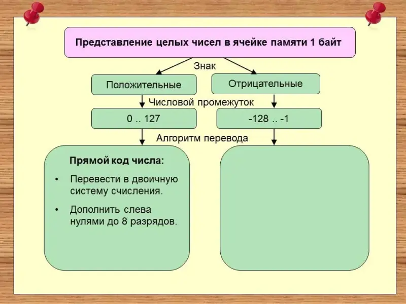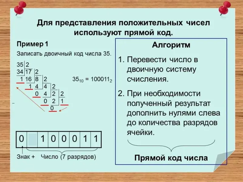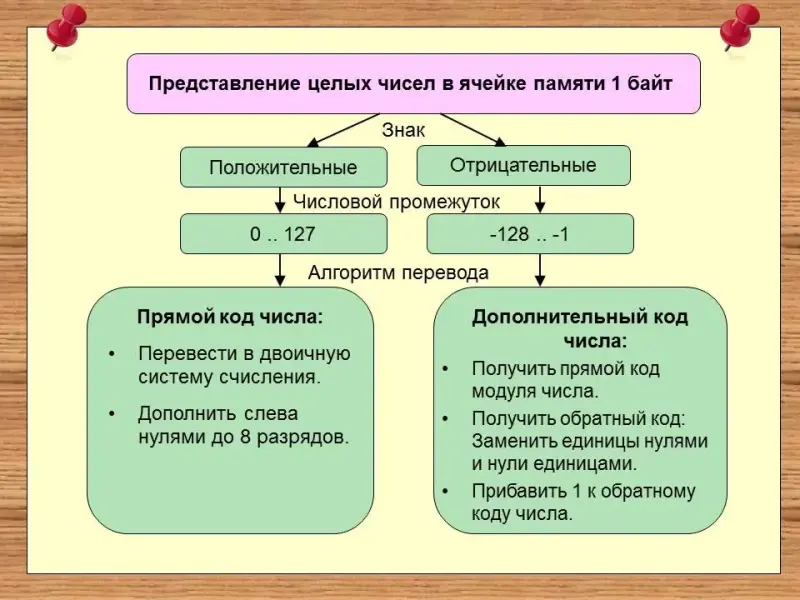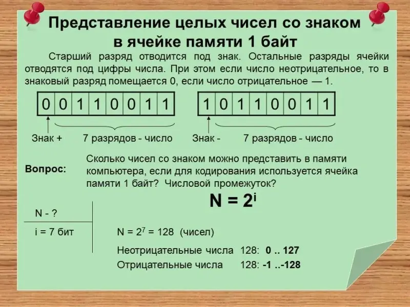 - Каким образом представляются положительные и отрицательные числа в памяти компьютера.
