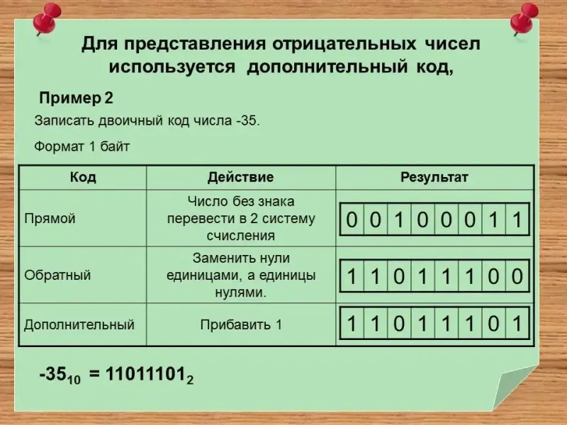 Разберём представление отрицательных целых чисел в памяти компьютера. (Слайд 14)