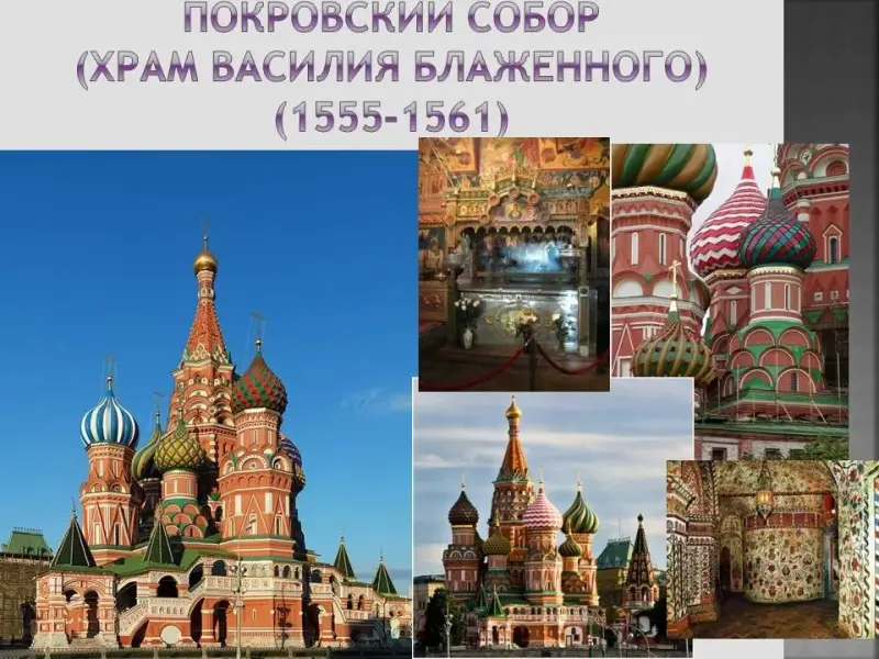 Архитектор: Речь идет о Покровском соборе. Собор был построен в часть покорения Казани войсками Ивана Грозного. А город Казань взяли сразу после Покрова дня. 2 октября 1552 г, т. е. сразу после Покрова дня . Народ позже стал называть собор храмом Василия Блаженного в честь известного московского ясновидящего. Верующие очень почитали его. После смерти Василия Блаженного похоронили у стен храма, а храм стали называть его именем. Собор стал украшением Красной площади. Строили его зодчие Барма и Постник Яковлев.