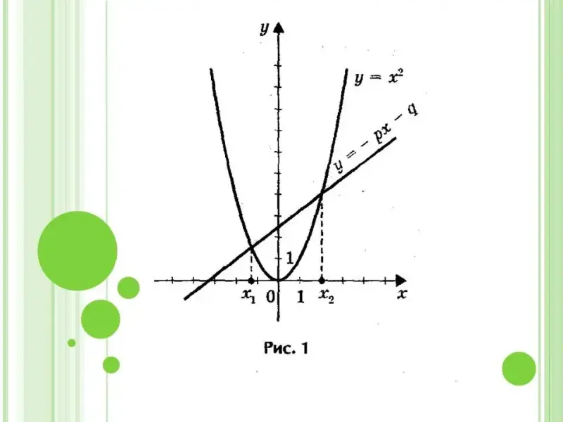 Представитель второй группы рассказывает о «Методе выделения полного квадрата». Представитель третьей группы рассказывает о «Методе решения уравнений способом «переброски». Представитель четвертой группы рассказывает о «Графическом методе решения квадратного уравнения». Представитель пятой группы рассказывает об истории возникновения квадратных уравнений (квадратные уравнения в Древнем Вавилоне, в Европе, Франсуа Виет и его квадратные уравнения, теорема Виета, как по коэффициентам p и q можно определить знаки корней квадратного уравнения) (этой группе материалы не предоставляются, всё нужно найти через Интернет). |