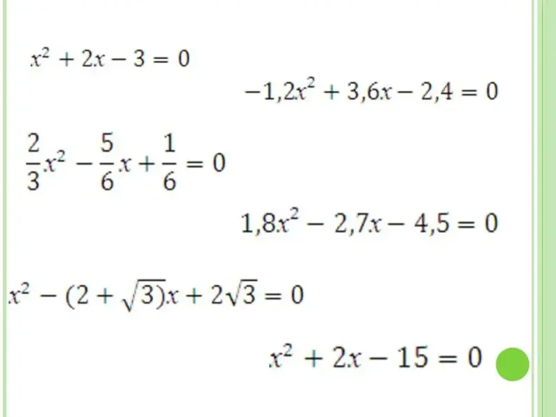 Уравнения, и приведенные, и неприведенные, коэффициенты, и положительные, и отрицательные. В первых двух свободный член был одним из корней, но в третьем - нет. Постепенно, приходим к выводу, что сумма коэффициентов равна 0. |