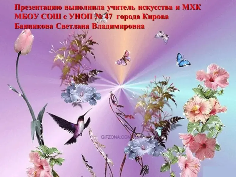- Благодаря произведениям искусства - литературным, музыкальным, живописным - природа предстаёт перед читателями, слушателями, зрителями, всегда разнообразной: величественной, грустной, нежной, ликующей, скорбящей, трогательной. Эти образы продолжают привлекать человека, затрагивая тончайшие струны его души, помогают прикоснуться к неповторимой красоте природы.