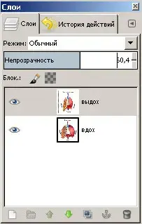 - Уменьшите непрозрачность верхнего слоя (рис. 2). Максимально совместите оба изображения с помощью инструмента Перемещение. Установите непрозрачность верхнего слоя 100%.