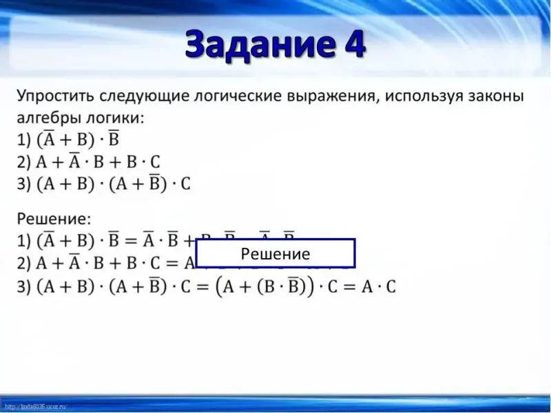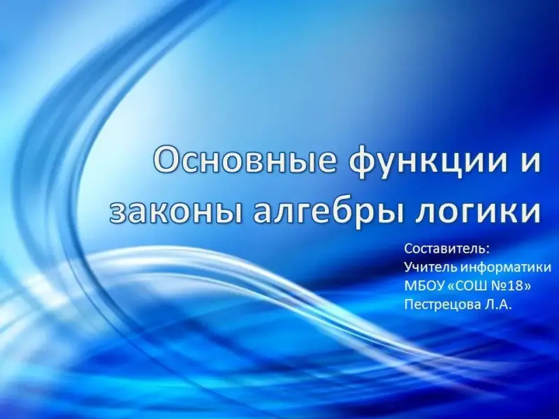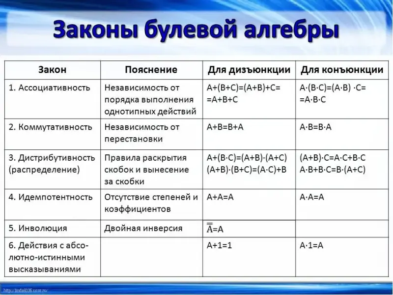 Основные функции и законы алгебры логики. 8-й класс
