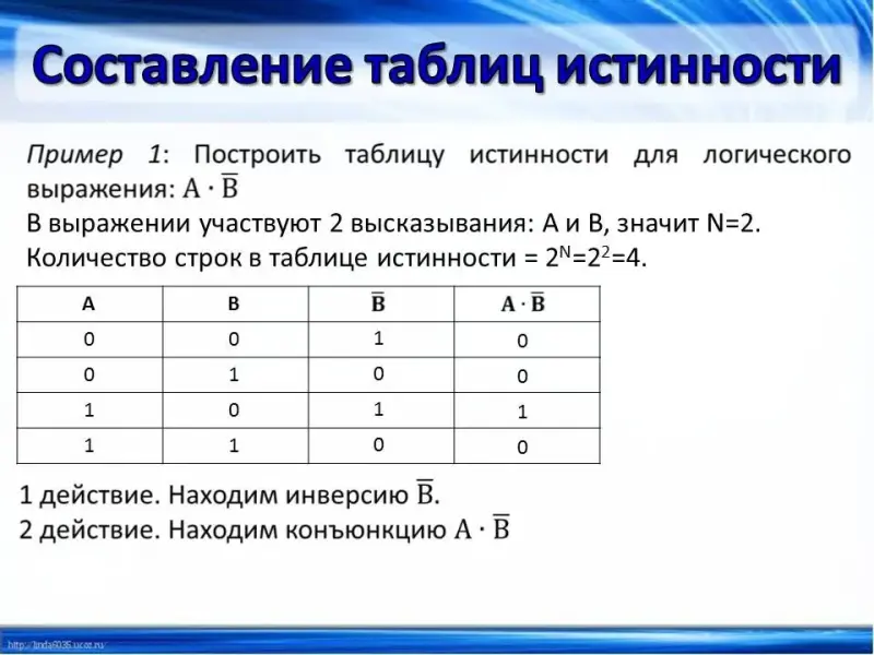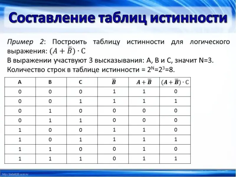 (Слайд 13) Рассмотрим примеры. Построить таблицу истинности для логического выражения: