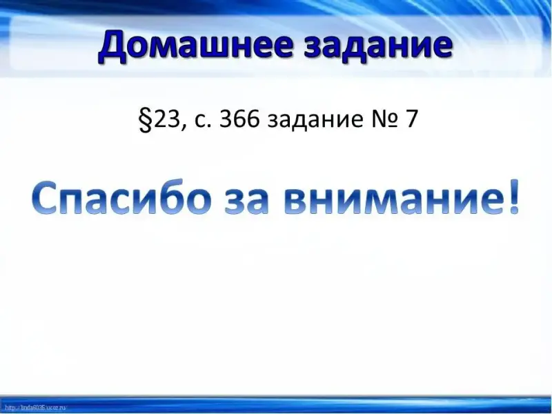 7. Домашнее задание. (Слайд 20) §23, с 366 № 7.
