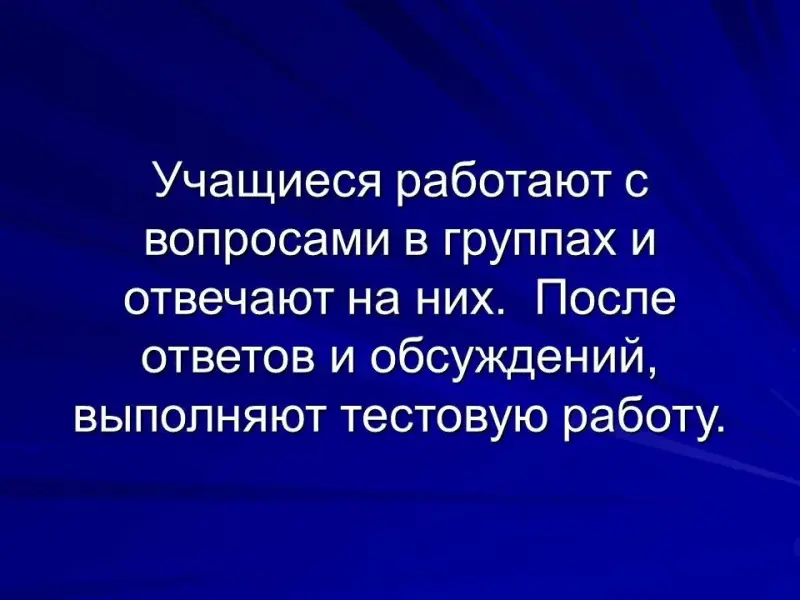 После предварительной подготовки представитель от каждой группы отвечает на вопрос для группы, остальные учащиеся дополняют представителя группы.