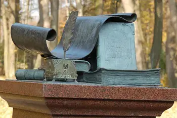 Рассмотрите фотографию памятника, предположите, кому поставлен этот памятник в Остафьеве?