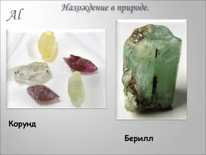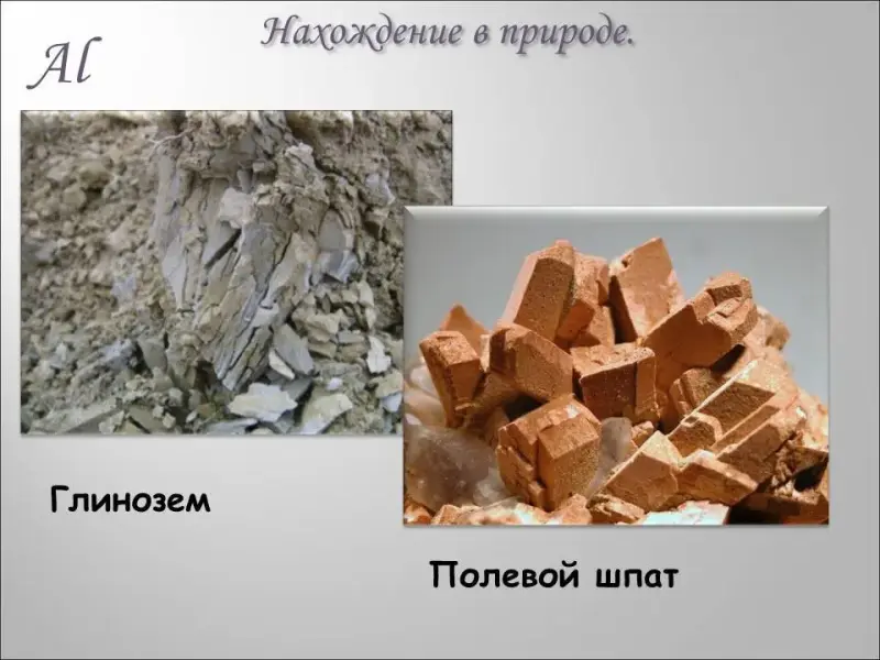 УЧИТЕЛЬ - Тема сегодняшнего урока «Алюминий и его соединения». С алюминием вы хорошо знакомы, видели его не только в коллекции «Металлы», но и в опытах по выделению водорода из кислот. (Рассмотрим коллекцию «Алюминий».) Из недавно проведенного химического КВНа вы знаете, что он самый распространенный в земной коре металл (8% по массе). В природе этот металл встречается, в основном, в виде оксида (Al2O3) и входит в состав бокситов, нефелиновых руд, глин, полевых шпатов и других минералов (коллекция). А можете ли вы предложить способ его восстановления из оксида?