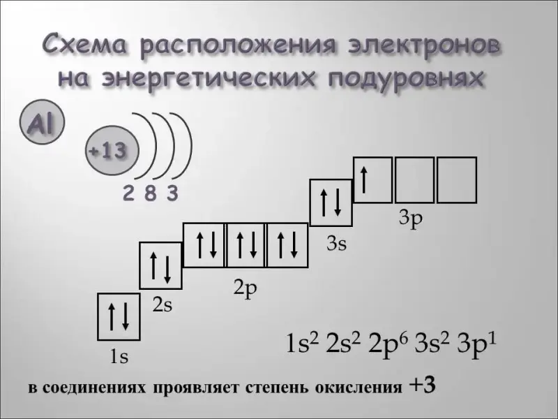УЧИТЕЛЬ - Прежде, чем мы познакомимся с химическими свойствами этого металла, давайте вспомним о строении его атома. Ведь строение определяет свойства. (У доски по алгоритму один ученик описывает строение атома алюминия).